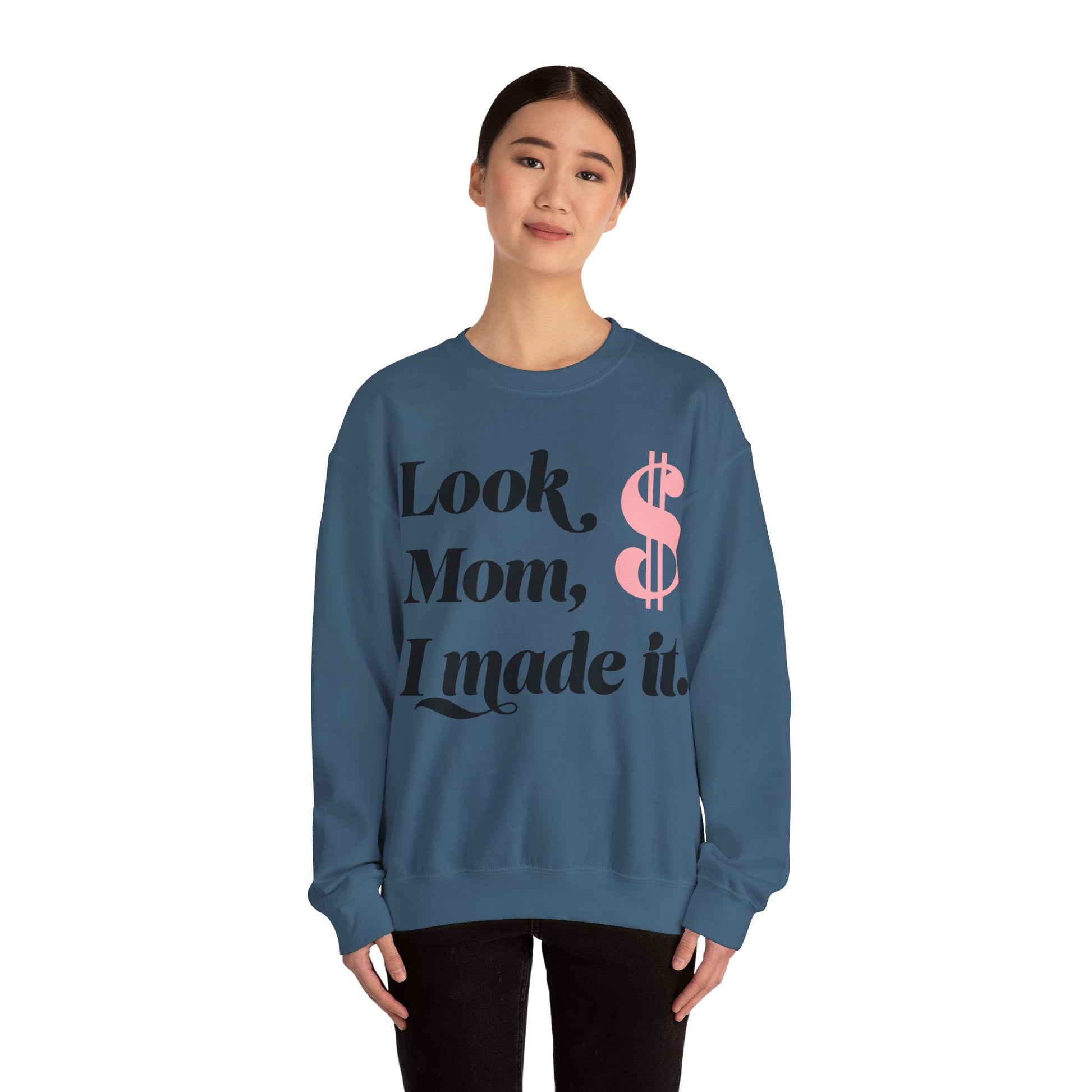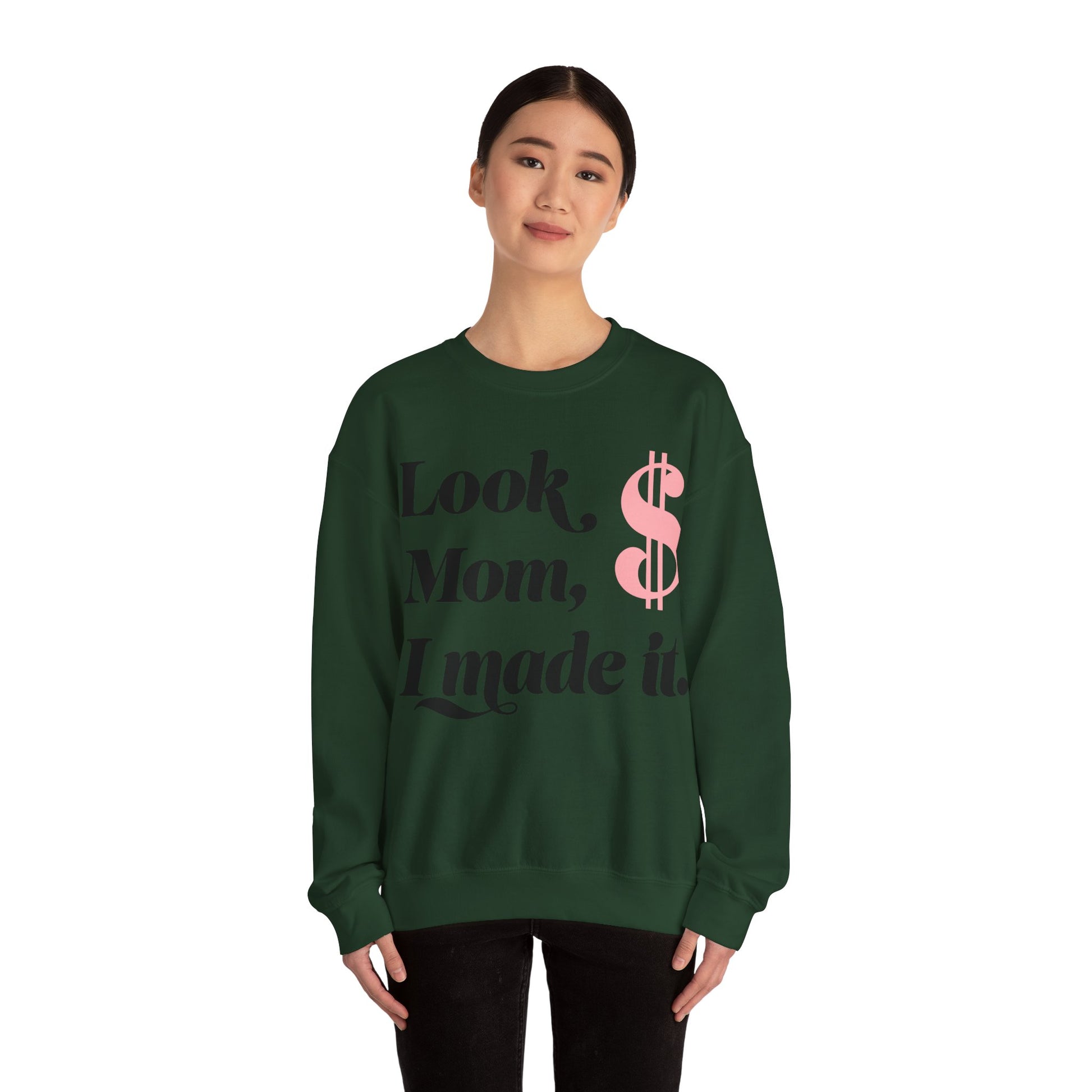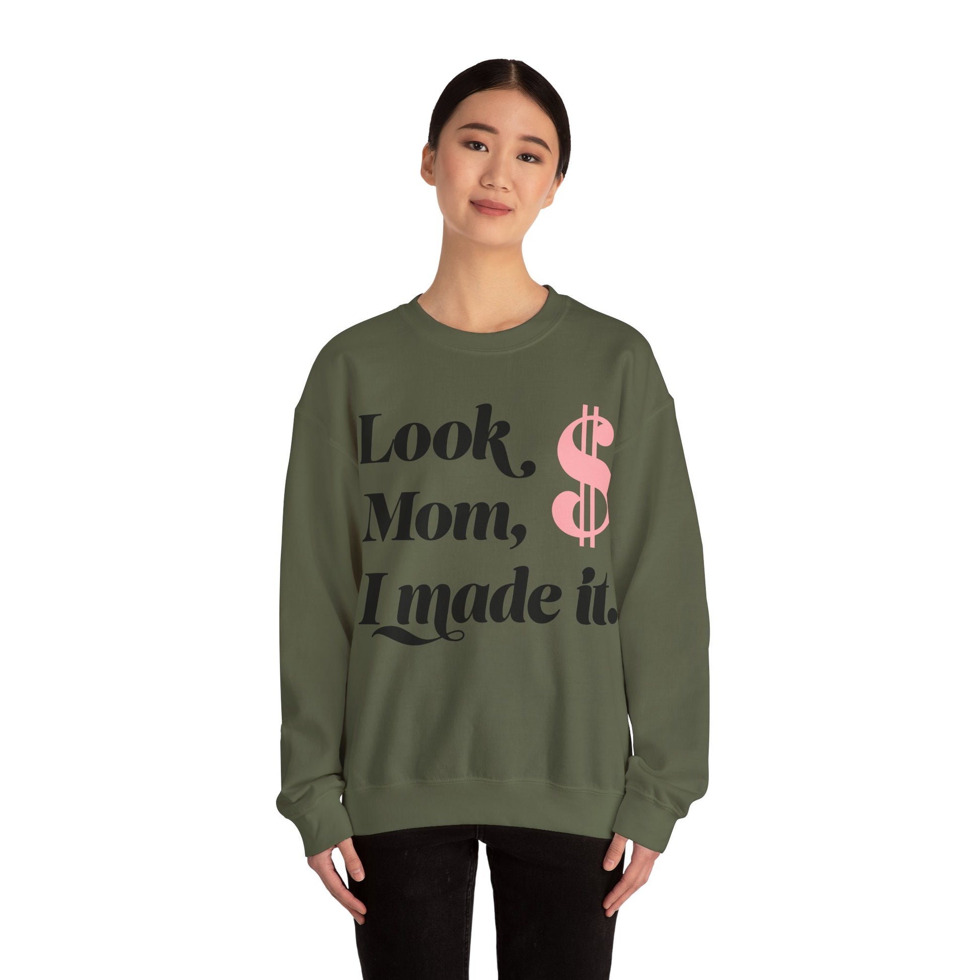 Stay cozy and stylish with this Unisex Heavy Blend™ Crewneck Sweatshirt. With its cheeky ‘Look, Mom, I made it’ design, it radiates a playful yet relaxed vibe. Perfect for casual outings, cozy nights in, or celebrating achievements with friends and family. This sweatshirt is tailored for anyone who cherishes comfort and humor, making it an ideal gift for graduates, newlyweds, or anyone reaching a milestone. It's a fantastic choice for holidays like Mother’s Day, graduation celebrations, or simply as a treat for yourself. Layer it over your favorite jeans or joggers for a look that’s irresistibly chic and comfortable.