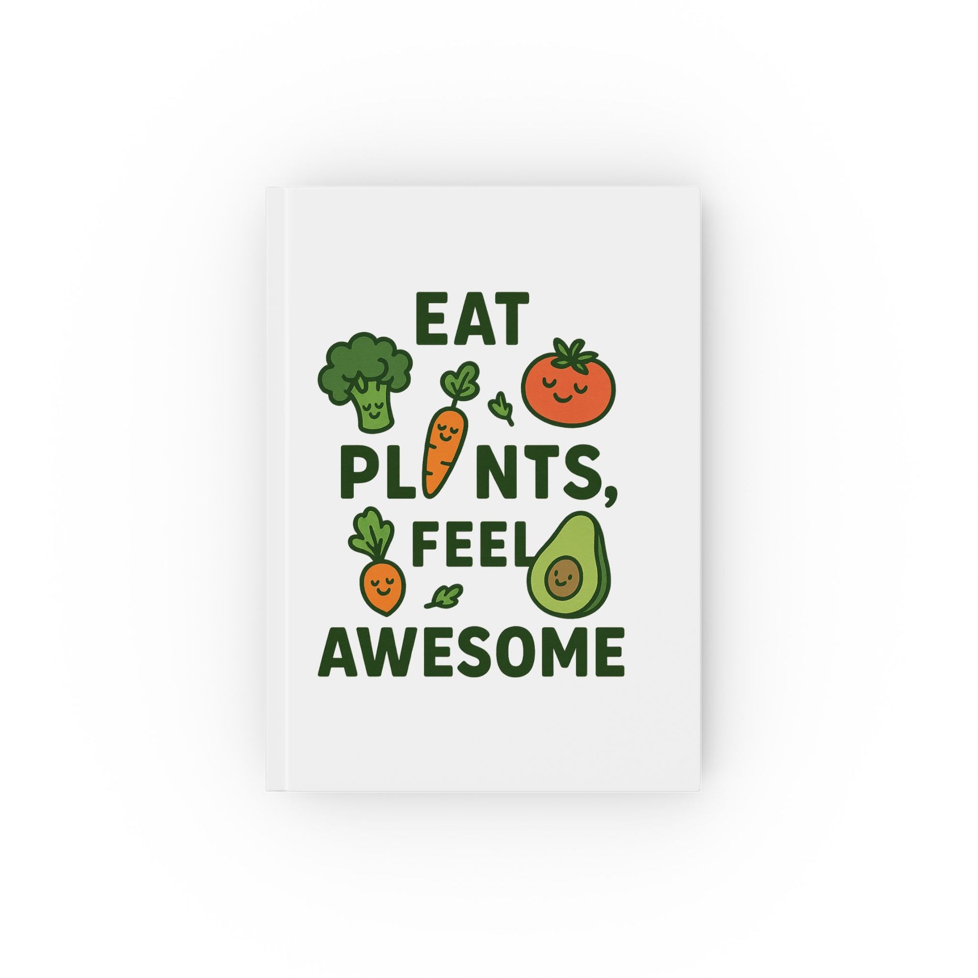 A vibrant and fun journal with playful typography and cute illustrated vegetables. Perfect for plant-based diet enthusiasts and those who love a healthy lifestyle. Ideal for jotting down recipes, meal plans, or daily thoughts. Great gift for vegans, vegetarians, and health-conscious individuals. Relevant for Earth Day, World Vegetarian Day, and National Nutrition Month.