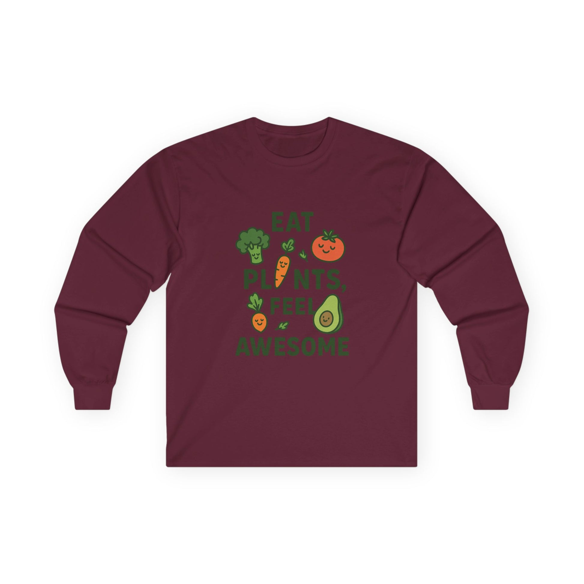 Embrace your plant-powered lifestyle with this Unisex Ultra Cotton Long Sleeve Tee. Perfect for food enthusiasts and eco-conscious individuals, it allows you to express your passion for healthy living while staying stylish and comfortable. The vintage feel of the environmentally-friendly cotton adds a touch of warmth and coziness, making it ideal for casual outings or lounging at home.