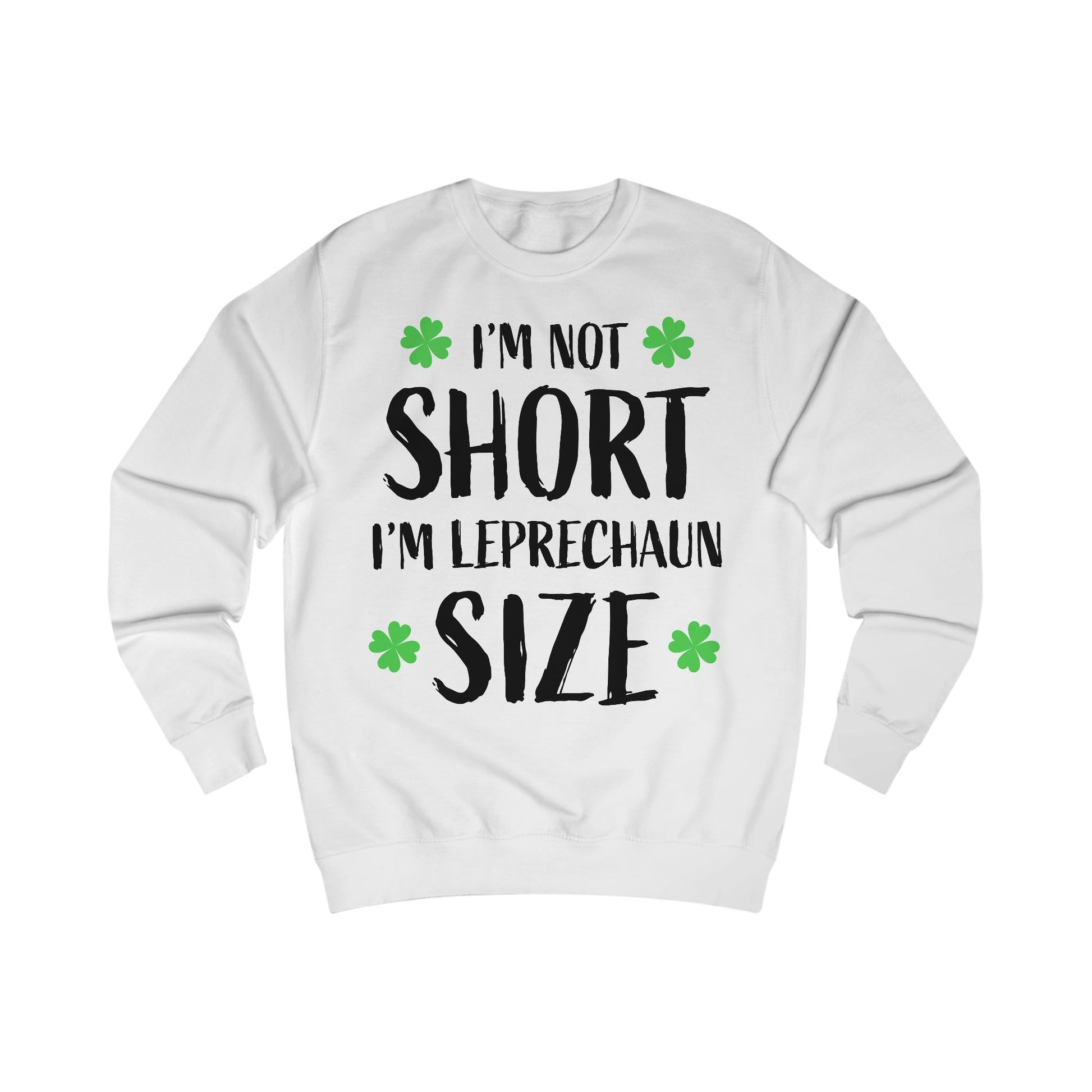 Stay cozy and stylish with this Unisex Sweatshirt featuring the fun and playful phrase 'I'M NOT SHORT I'M LEPRECHAUN SIZE'. Perfect for anyone who wants to add a touch of humor to their wardrobe. This sweatshirt is ideal for St. Patrick's Day celebrations and casual everyday wear.