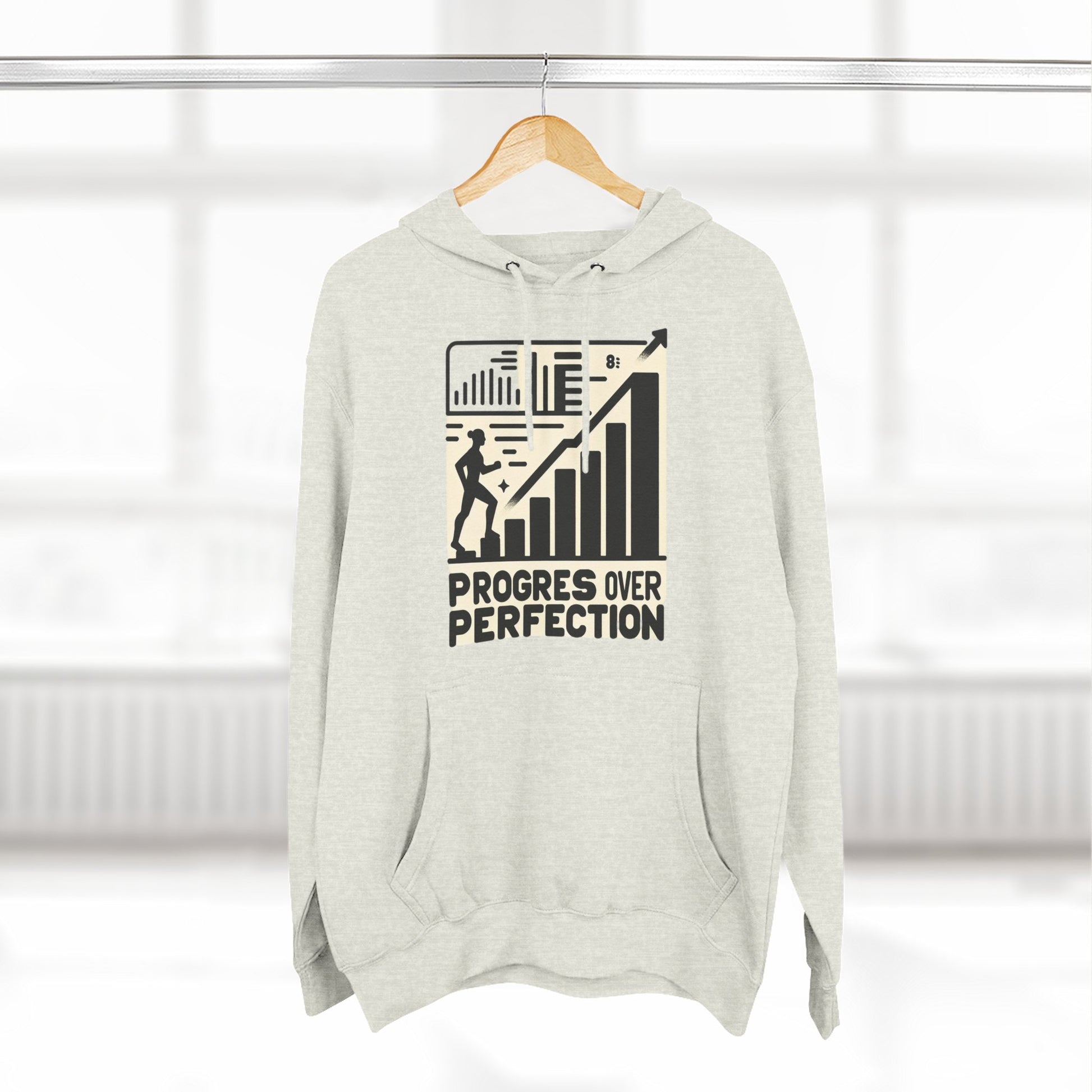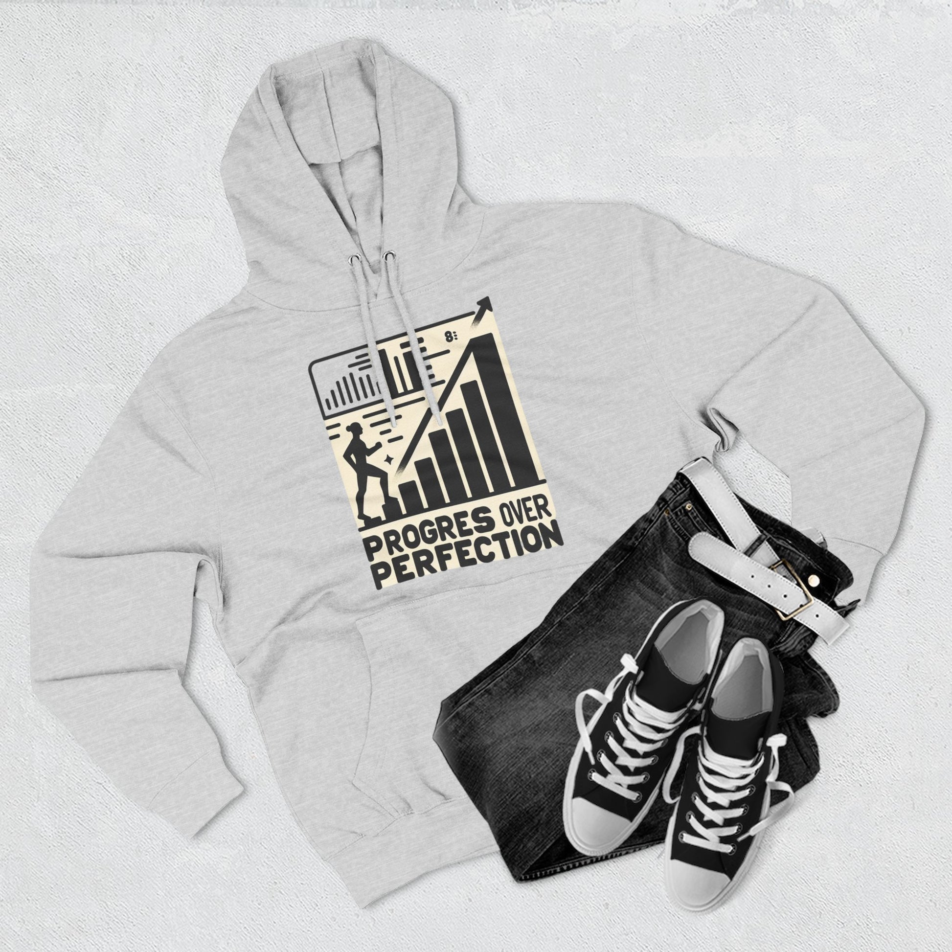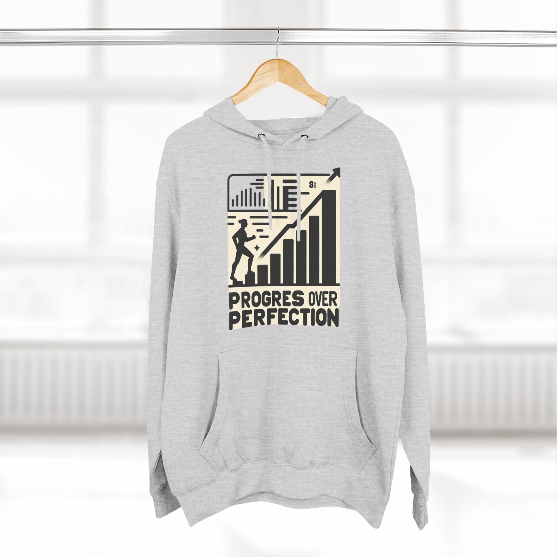 Motivational Fleece Hoodie: Progress Over Perfection, Cozy Sweatshirt, Gift for Achievers, Workout Apparel, Inspirational Fashion