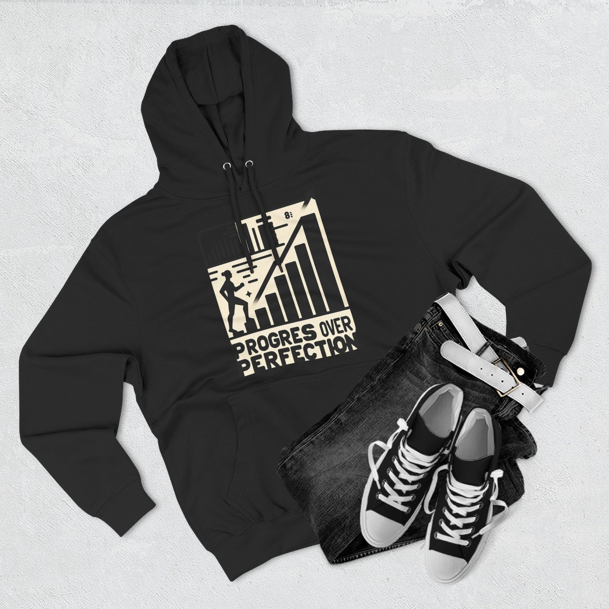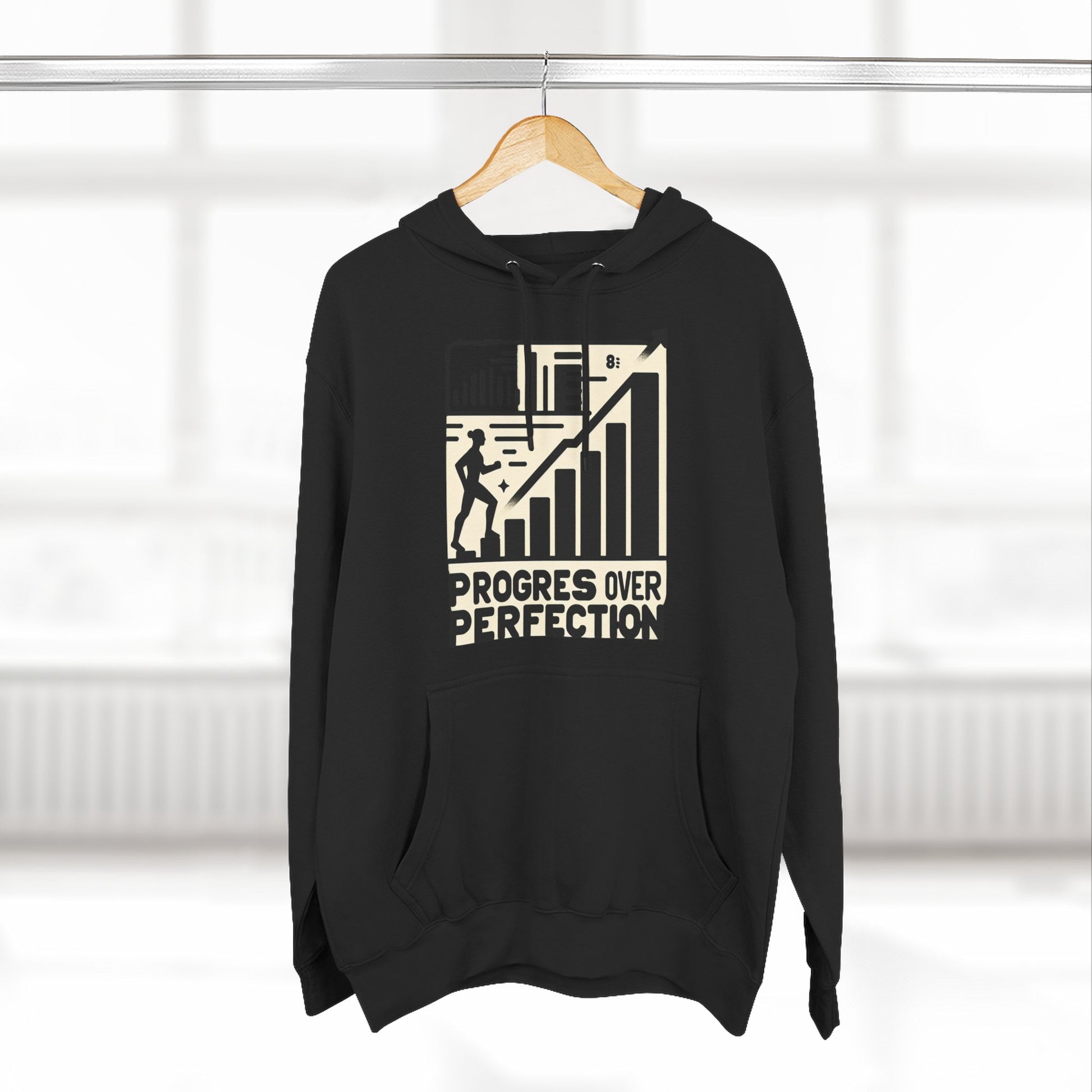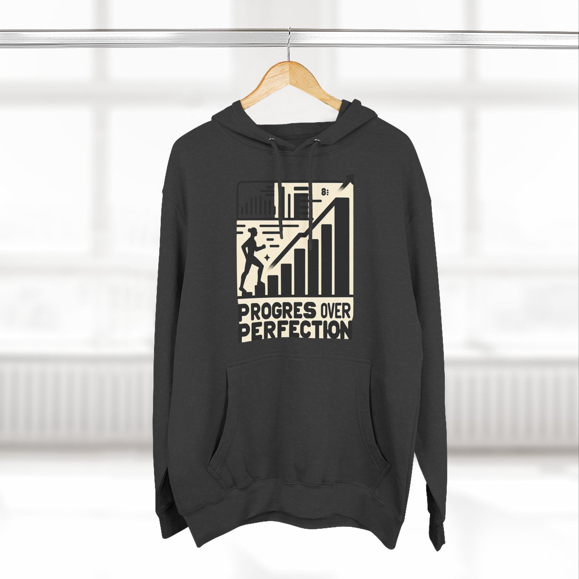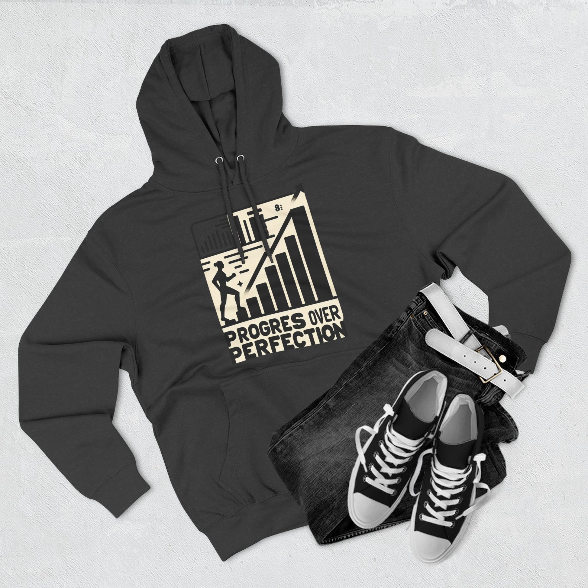 Motivational Fleece Hoodie: Progress Over Perfection, Cozy Sweatshirt, Gift for Achievers, Workout Apparel, Inspirational Fashion