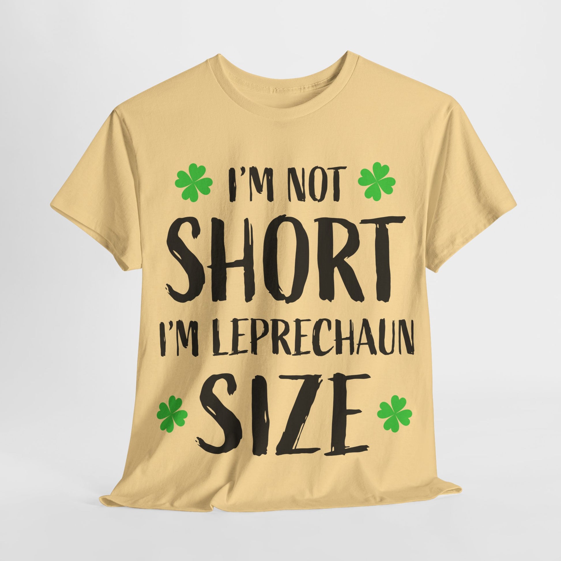 Celebrate St. Patrick's Day with this funny Leprechaun Size T-Shirt made from heavy cotton. Perfect for holiday celebrations and a great gift for short friends with Irish pride. This unisex tshirt is a must-have for those looking to add some humor and festivity to their wardrobe.